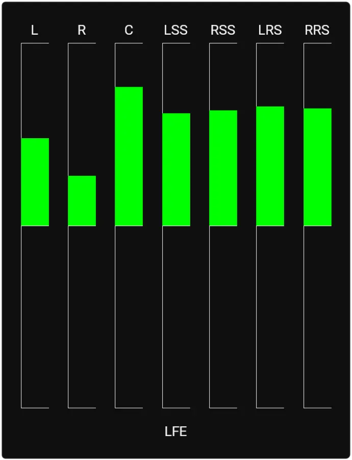 Any visible activity signifies unwanted content leaking into the LFE channel.