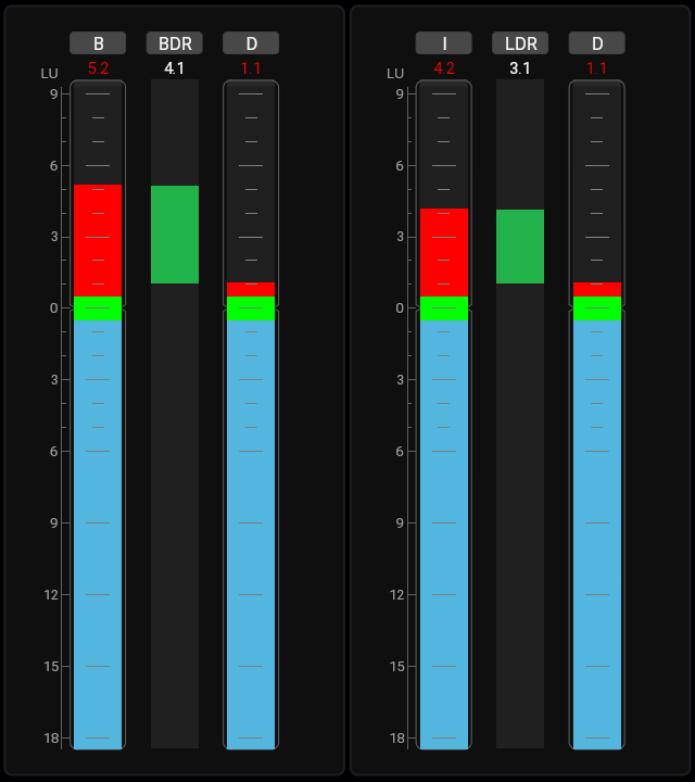 These are measured against the Loudness Range (LRA) descriptor specified in EBU R 128. It is used to show whether a program has a continuously constant loudness or a high variation between low and high level components.