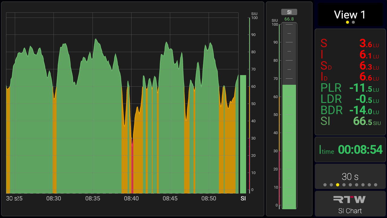 With a flexible time range from 10 seconds to 2 hours, auto-scaling, and customizable appearance, the Chart adapts to any workflow. It can also synchronize with other meters for a complete overview.