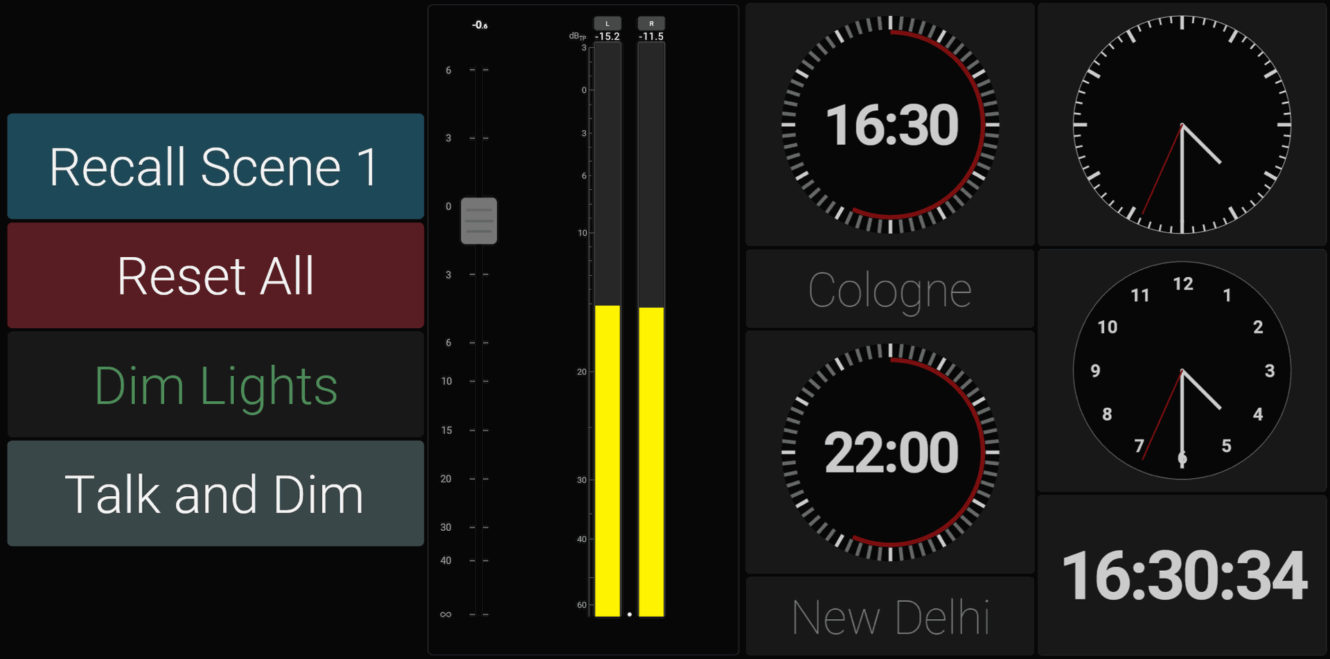 - Two-Way OSC Integration – TouchControl 5 and TouchMonitor not only send commands but also respond to incoming OSC, enabling control of key functions such as preset recall, loudness start/stop/reset, reference level recall, mic gain adjustment, and more.