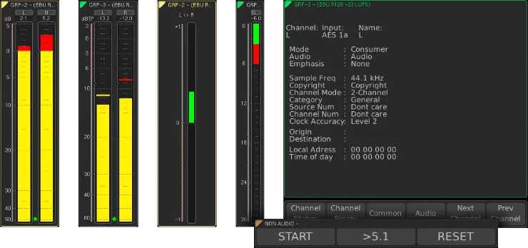 The Premium PPM and Vectorscope license expands the Basic 4-channel PPM (standard software) with additional scales (Zoom, SMPTE, NHK, ARD+9, et al.), additional display modes (segment, classic), and PPM/VU moving coil instruments with different scales and functions. It also provides up to four 2-channel Audio Vectorscopes and a separate phase meter.
