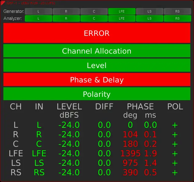 - Phase Correlation and LFE phase warning to avoid downmix errors