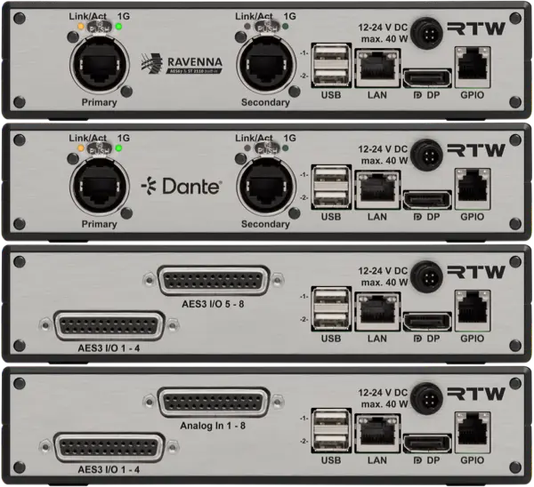 In addition to AoIP, both are also available in analog and digital AES versions.