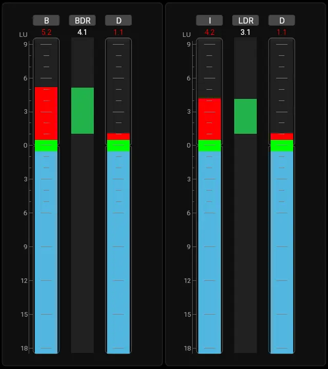 It can be used for dialog intelligibility related measurements such as BDR (Background-to-Dialog Ratio) or LDR (Loudness-to-Dialog Ratio), and it is equally valuable for comparing loudness differences between two independent sources.
