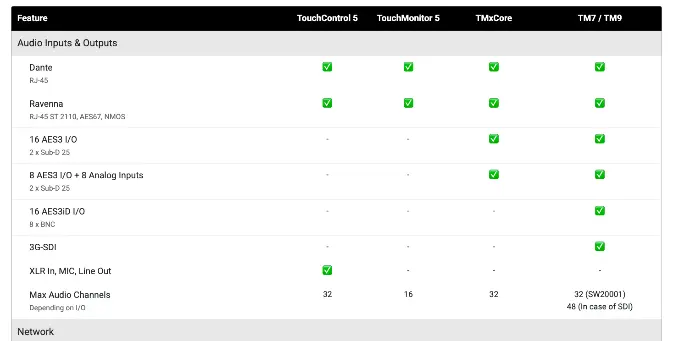 The classic TouchMonitor also offers SDI connectivity, which the TMxCore does not, as SDI workflows are gradually being replaced by AoIP-based solutions.