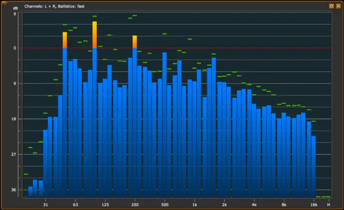 A spectrum analyzer is essential for dance, techno or similar music productions containing extremely low-frequency signal components.