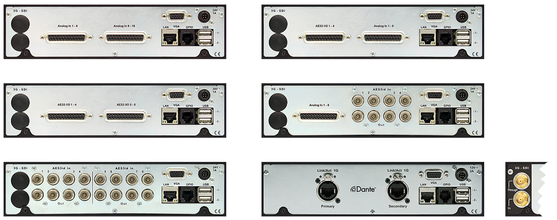 32-ch. 3G-SDI (BNC, Input and Loopthru), combined with Analog and/or AES