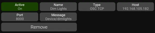 With a single button press, your RTW device can send OSC messages via TCP/UDP and/or HTTP requests. You can use the dedicated action button, but since OSC is available throughout the interface, other buttons can also be configured to send one or more commands.