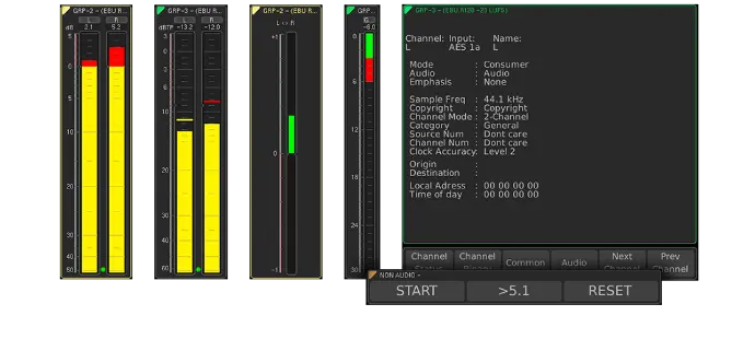 Extension with Loudness (EBU, ITU, ATSC, ARIB, OP-59, AGCOM, CALM, a. o.) and SPL functions, and Loudness Range instrument (LRA).