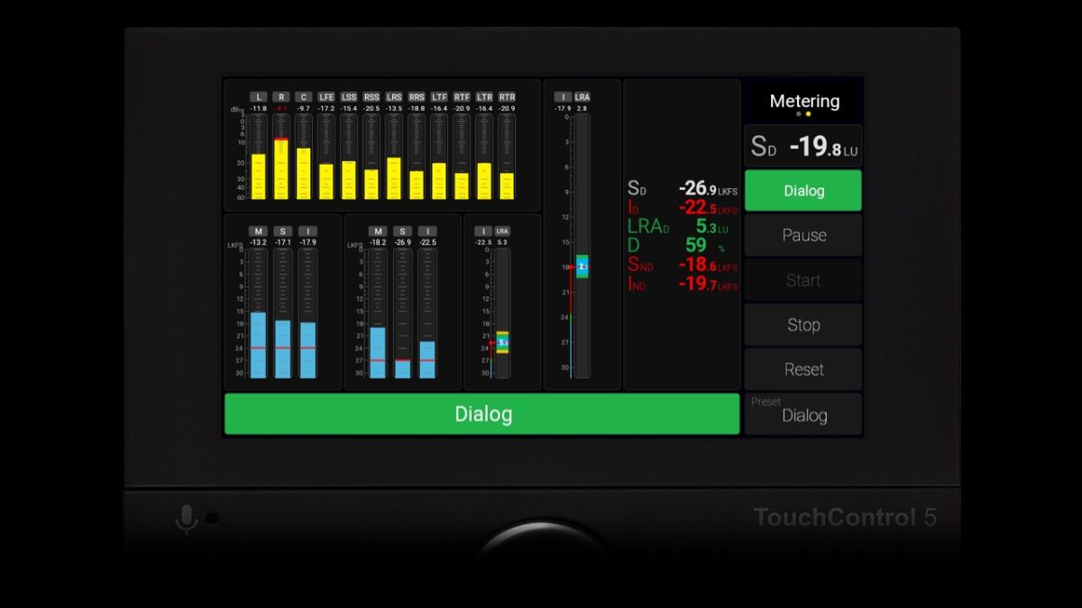 TouchControl 5 is the first hardware metering device to feature dialog-gated loudness. This functionality is included in the TouchControl 5 software version 1.3, which is available now.