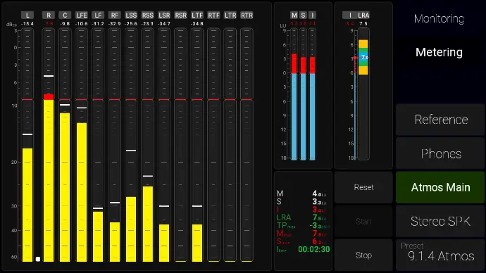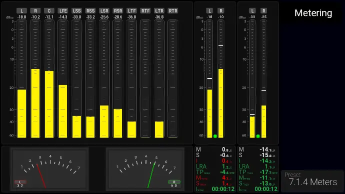 Metering with PPM for 7.1.4 plus two additional stereo inputs.
