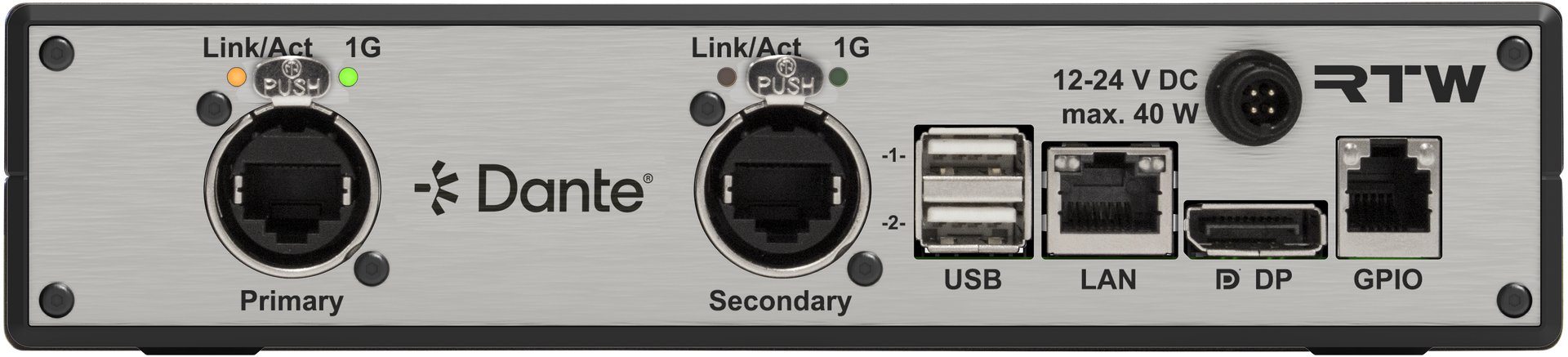 - 32 channel Dante® AoIP (RJ-45)