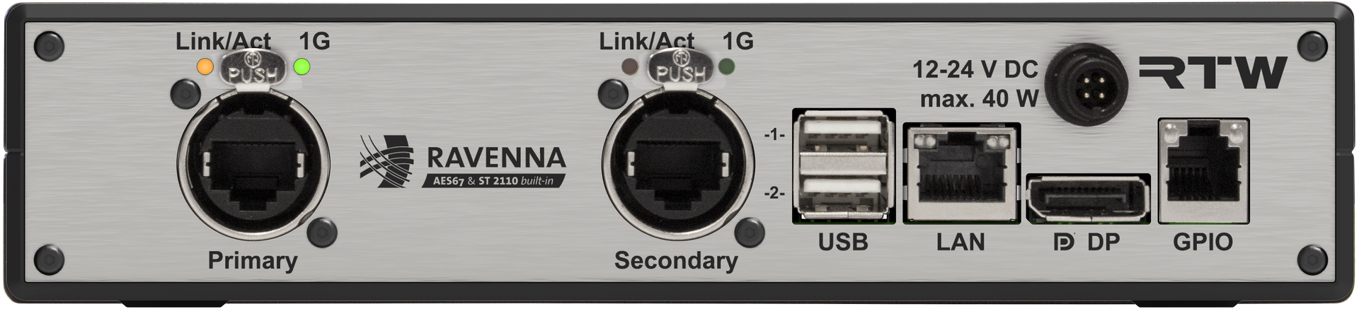 - 32 ch RAVENNA®/AES67/ST 2110 AoIP (RJ-45)
