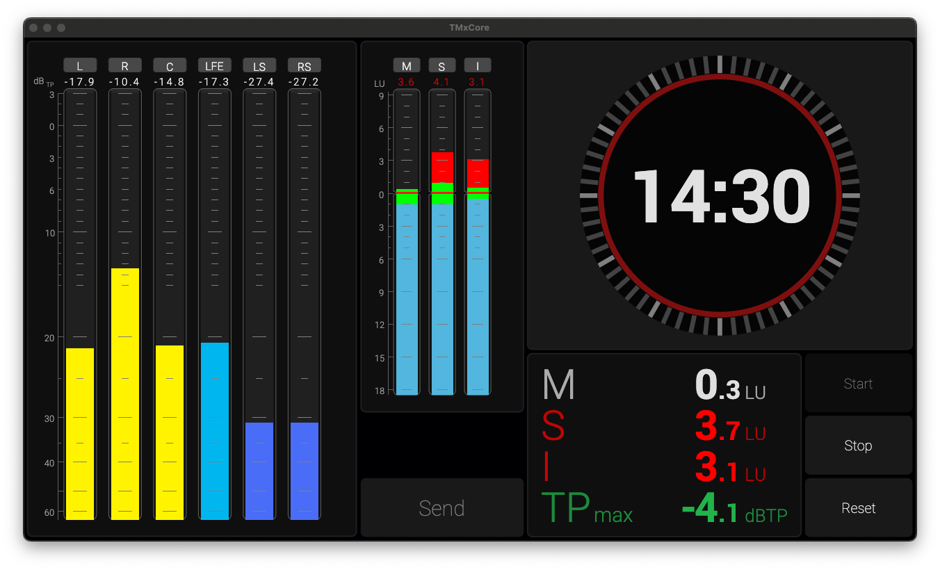 As post-production studios increasingly adopt Dante® audio networks for immersive content creation, TMxCore stands out with its advanced metering tools, especially for immersive audio and speech intelligibility.