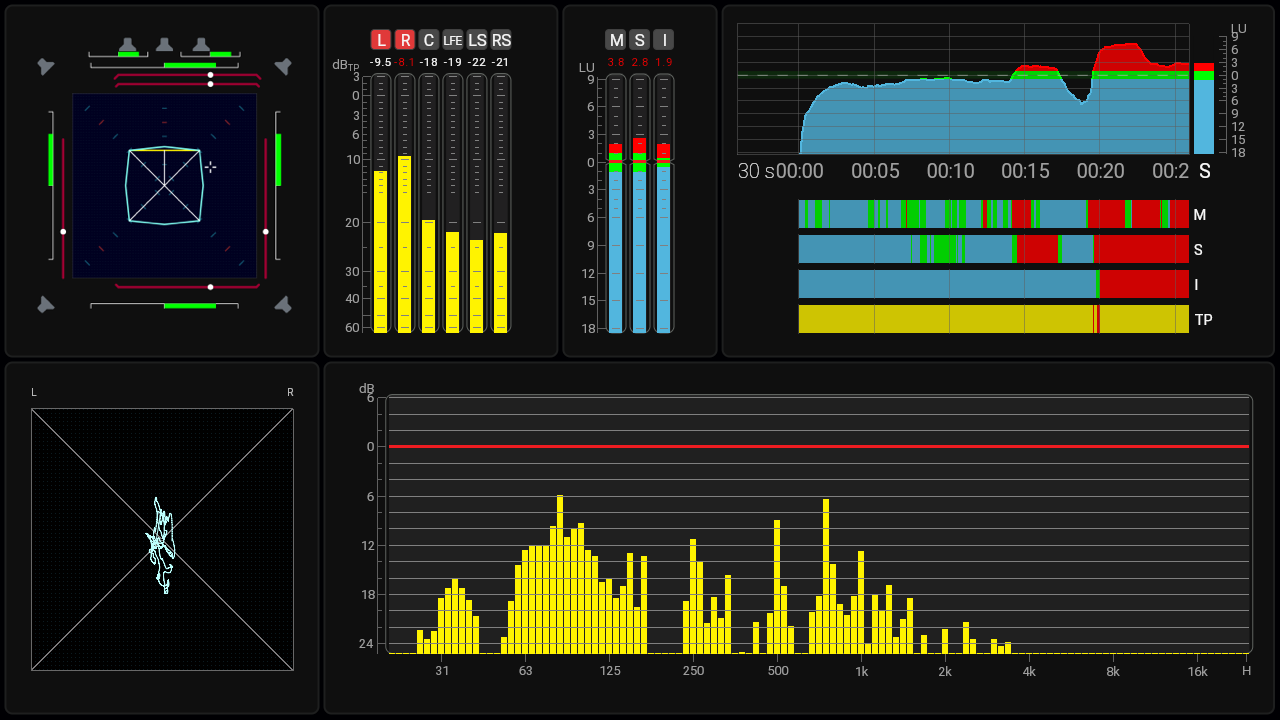 - Immersive audio metering for surround and immersive formats including 5.1 and 7.1.4