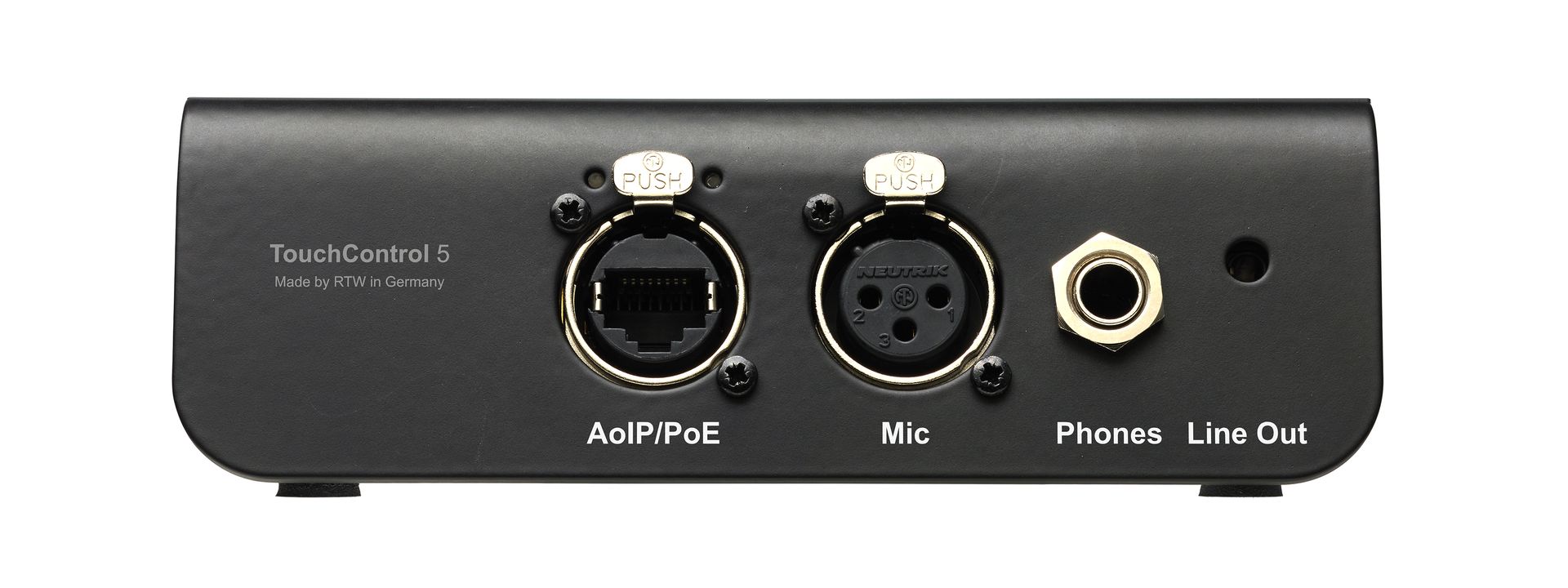 - The bottom of the TouchControl 5 features two mounting holes compatible with the RTW 1166 Metal Mounting Plate.