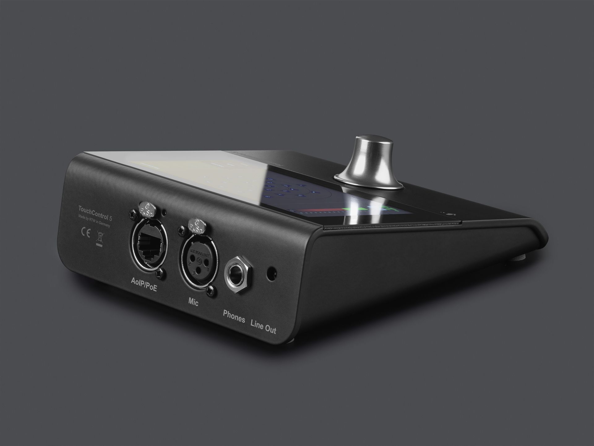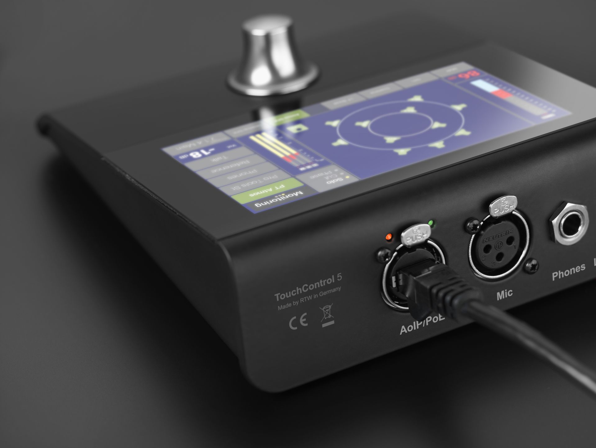 - Immersive table-top monitor controller and meter with 5” touch display and 32 Dante® or RAVENNA® channels