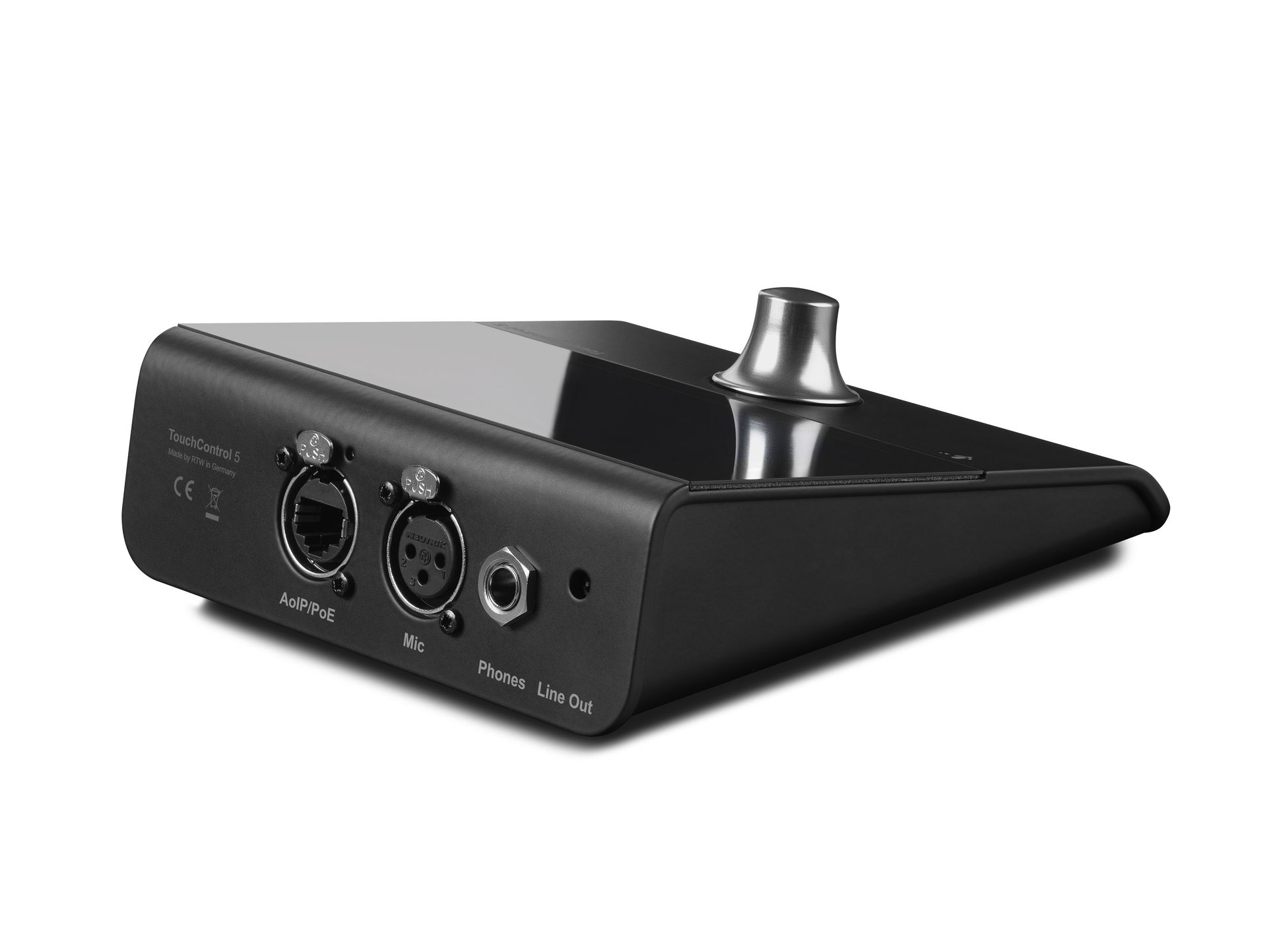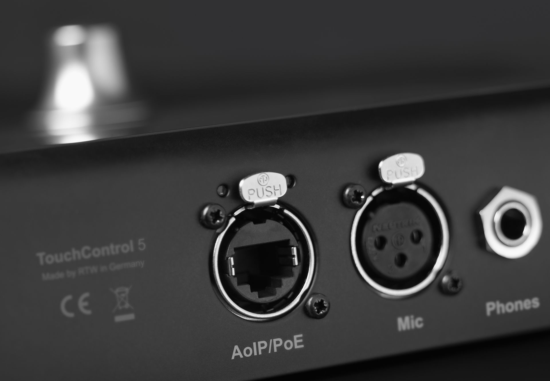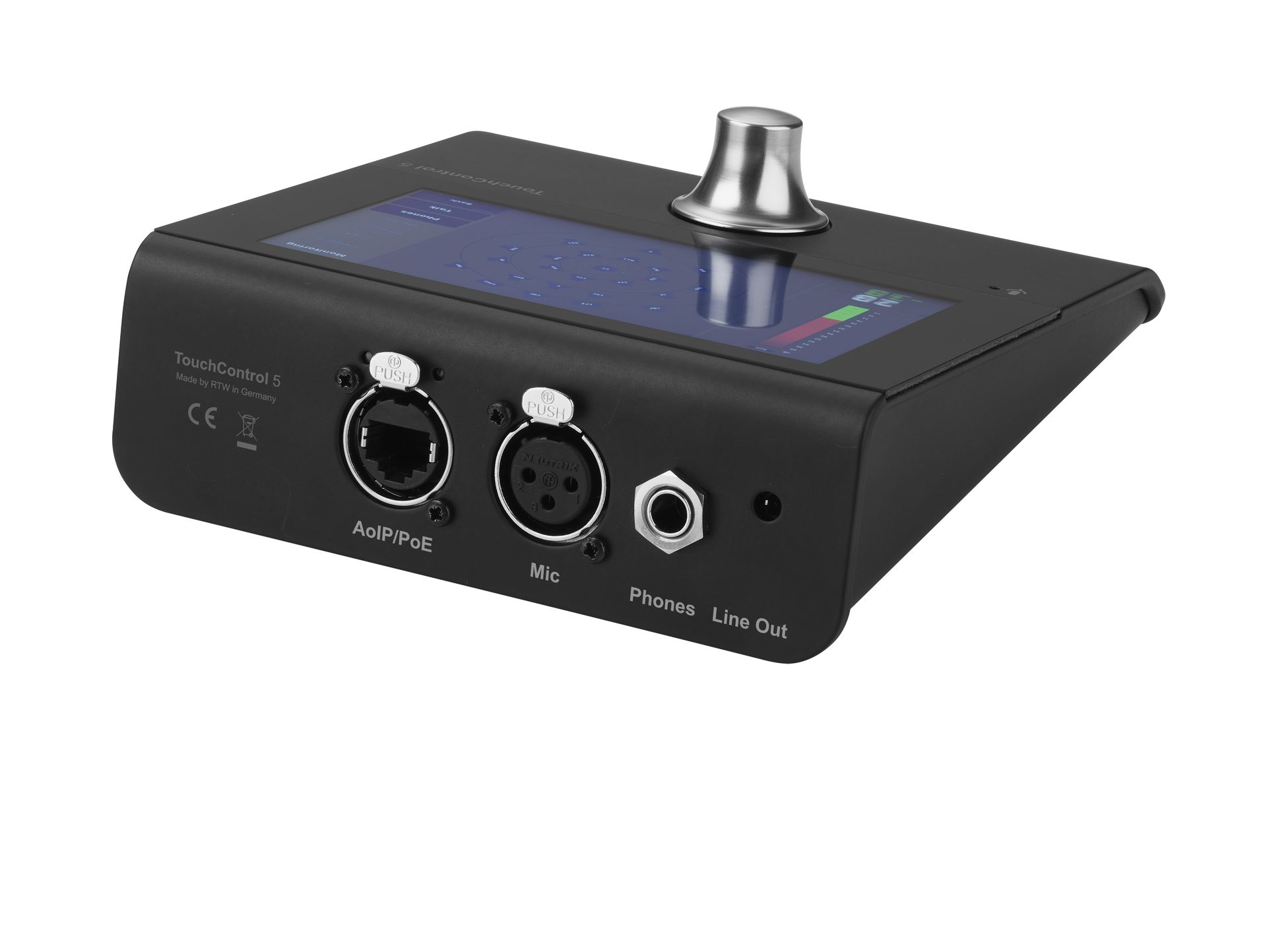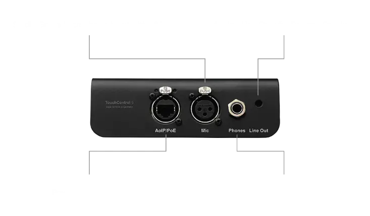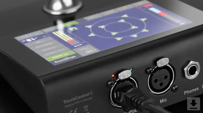 On the front of TouchControl 5, the integrated microphone serves a dual purpose - it provides input for SPL measurement and can also be used for talkback.