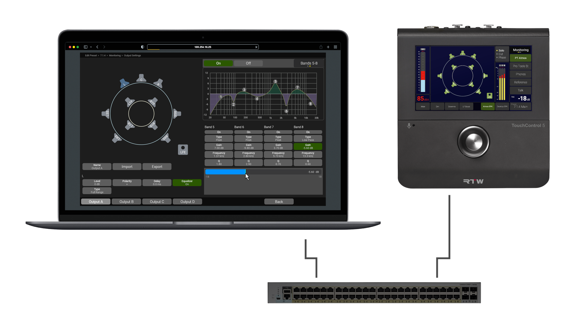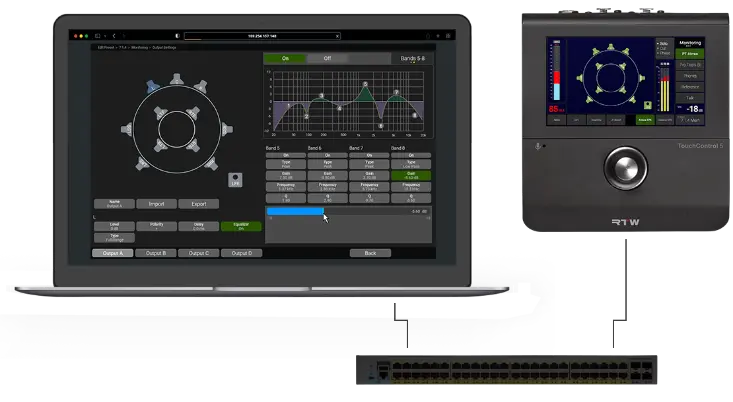 Meet TouchControl 5, our Dante®- or RAVENNA®-based immersive monitor controller with metering.