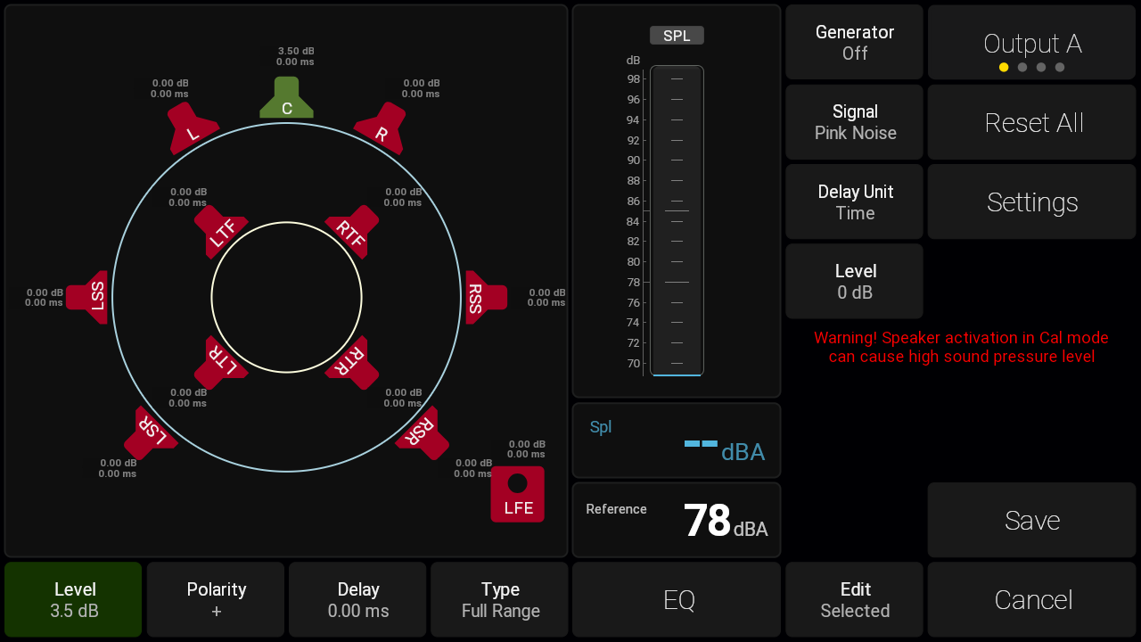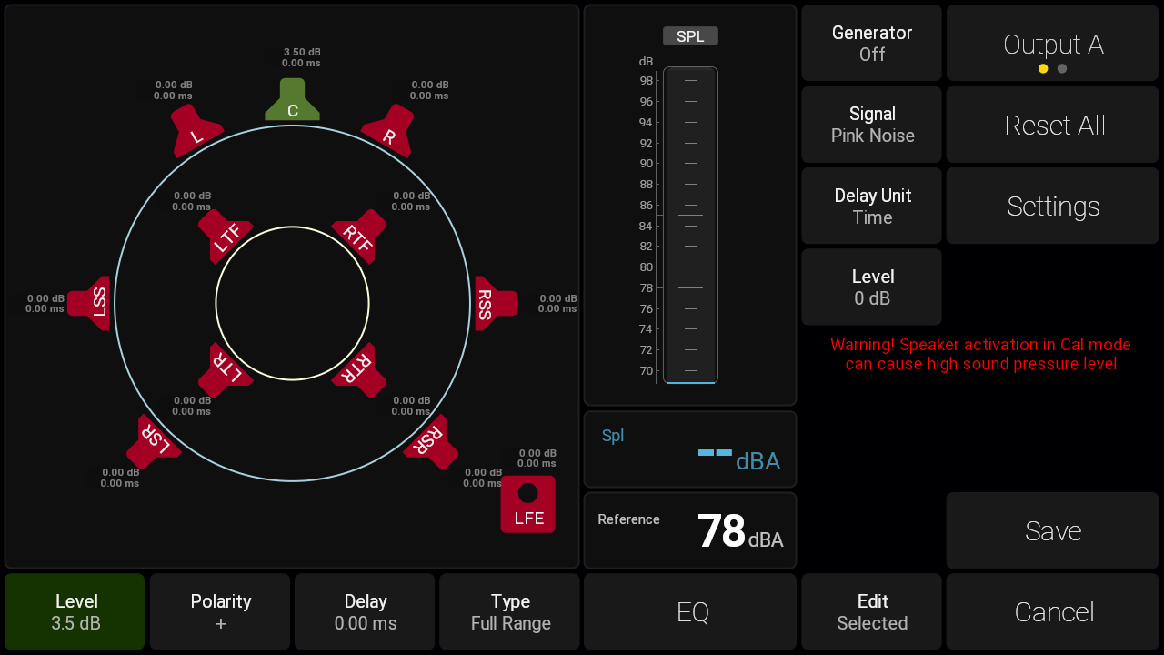The speakers in your setup can be calibrated with regards to level, delay, polarity and EQ.
