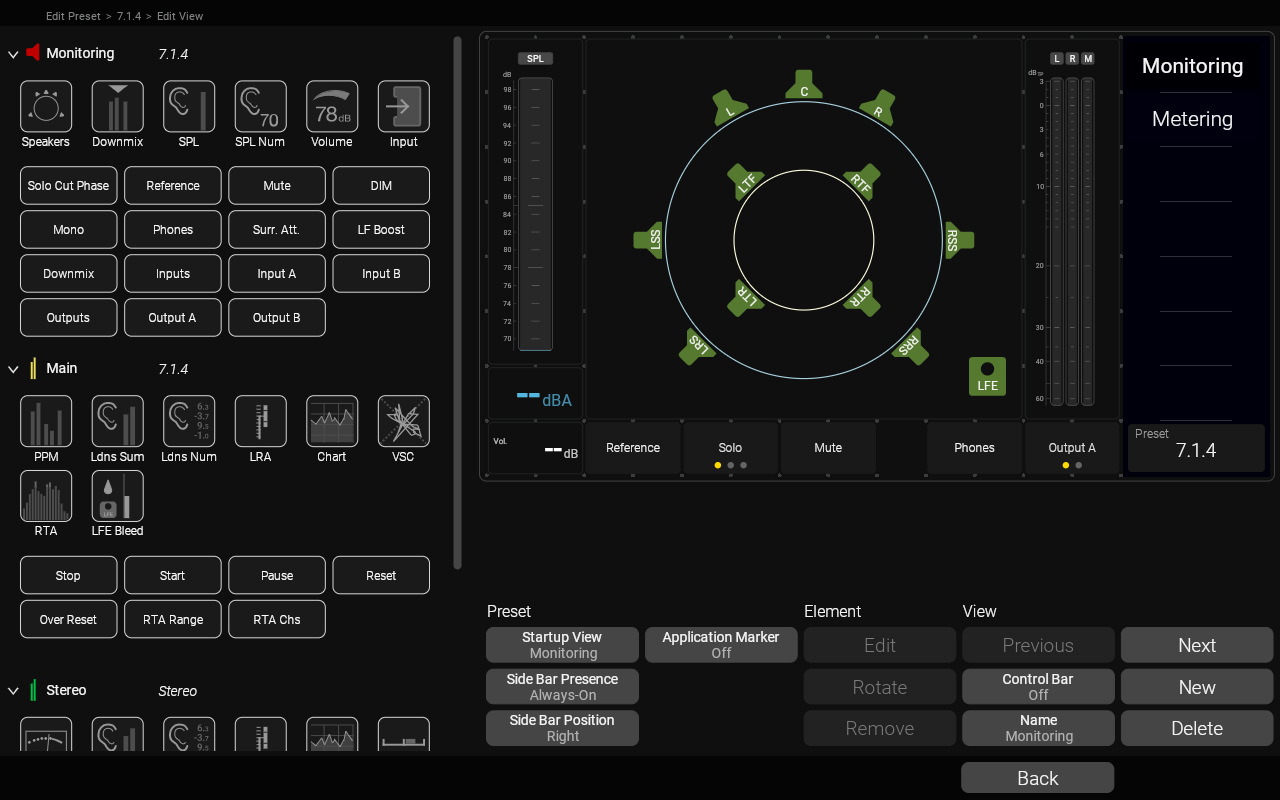 The Adding Metering to the 7.1.4 Monitoring Preset video on our YouTube channel shows how to add Metering functions to a Monitoring preset for example.