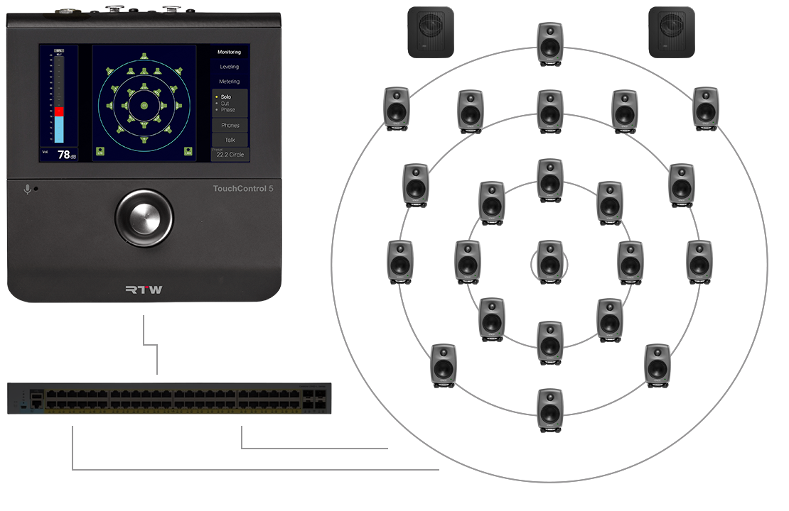 With support for up to 32 audio channels in and out, TouchControl 5 can handle channel configurations from stereo to 22.2.