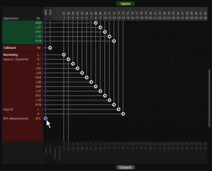 Room SPL can be measured in real time using the internal microphone or an external measurement microphone connected to the XLR input.