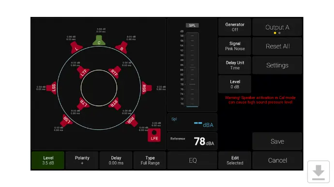 The support for measurement microphones, the built-in test tone generator and the live-input SPL meter is the optimal tool combination for calibrating your speaker levels to ensure they are perfectly aligned.