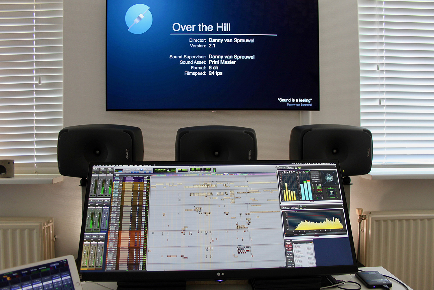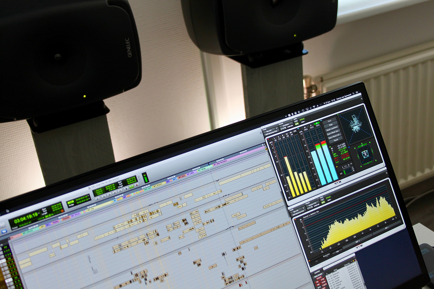 “My new working area for feature film and television sound mixing. With the amazing RTW Mastering Tools, I have levels and frequencies at a glance with high precision and fully customizable to my needs.” (Danny van Spreuwel)